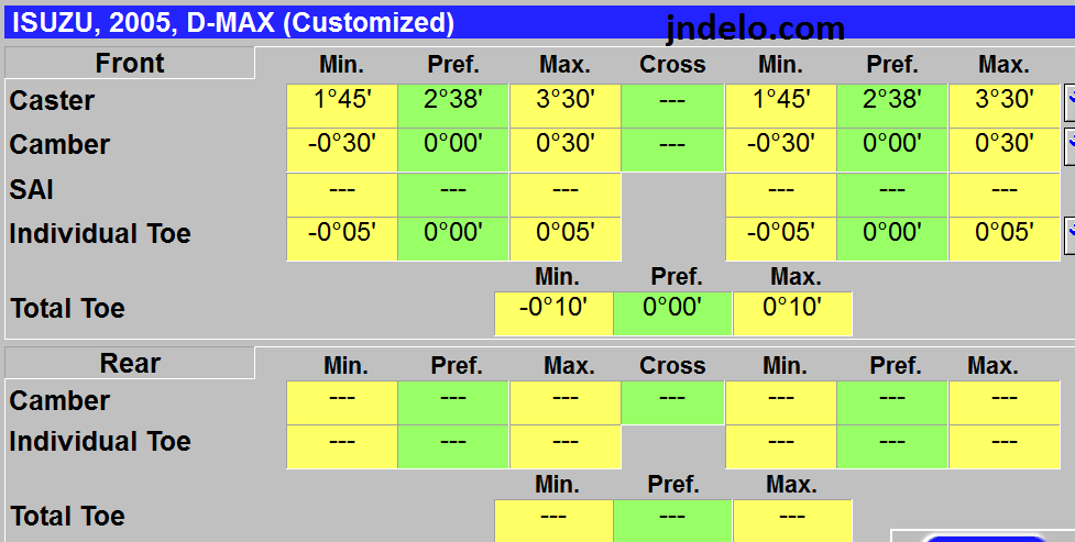 | Bagian belakang | Camber | Left (kiri) | ---- | ---- | ---- | |||